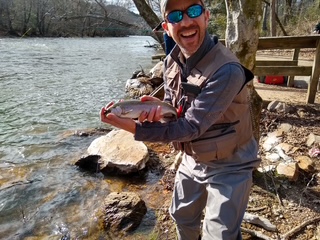 He has been fishing his whole life, the majority of which was on his hometown GA lakes and ponds where he fell in love with being outdoors and fishing largemouth bass, crappie and bream. He was first introduced to fly fishing by his aunt and uncle while in his twenties, and he was bitten instantly by the trout bug and life on the river.